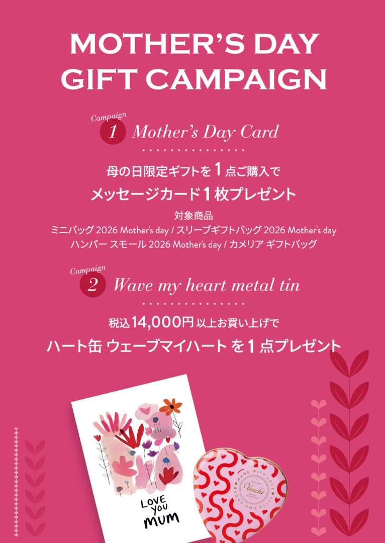感謝を伝える母の日を、さらに特別な時間にしていただくために、<MOTHER’S DAY GIFT CAMPAIGN>を実施します。